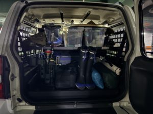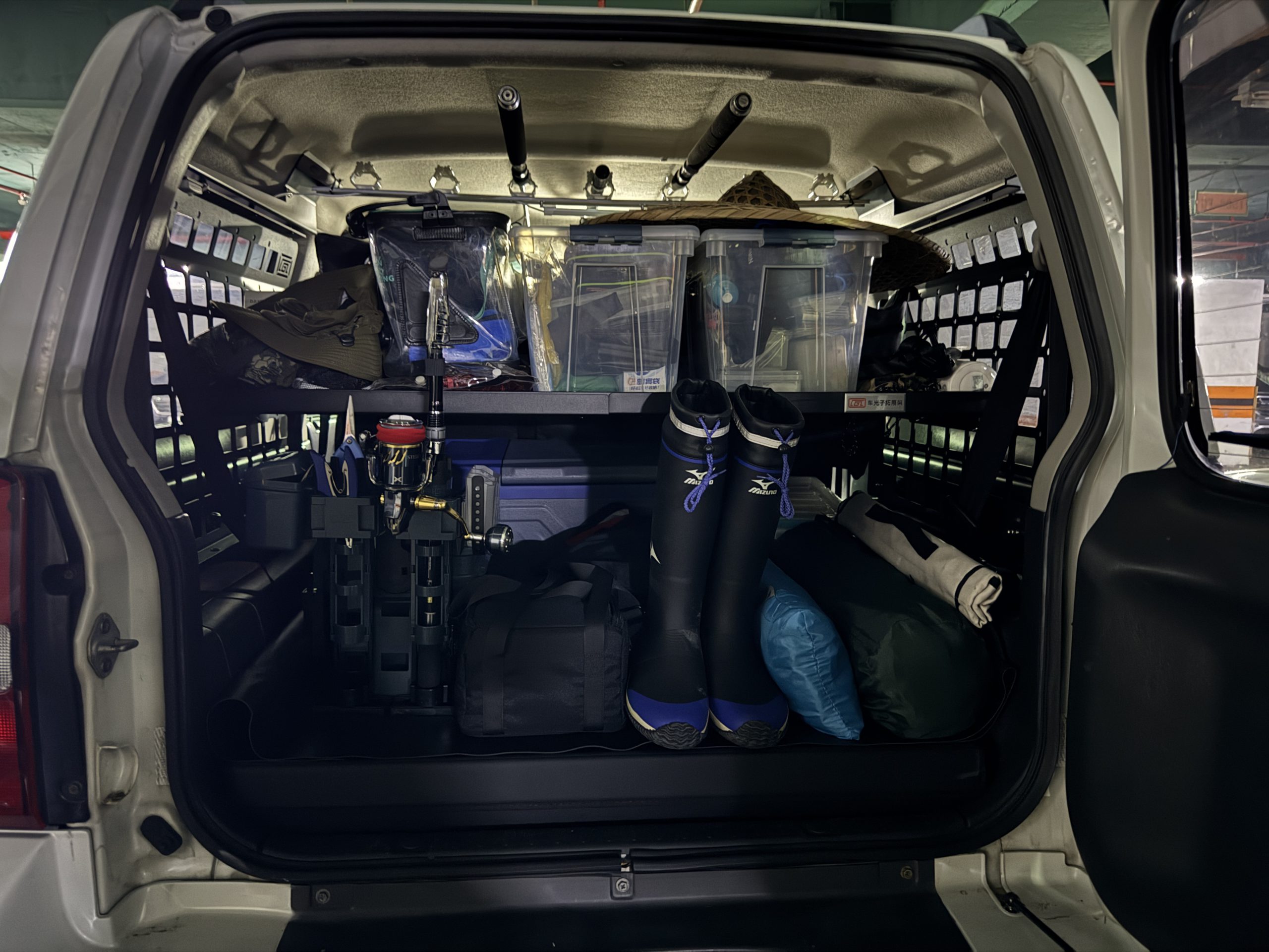 釣行車のJimnyは後席を常時畳んでカーゴスペースを確保し釣り道具一式と野営道具一式を積み込んでおるのだけど、ハマり脱出用ラダーのしっかりしたやつ積むことにしてからいささか苦しくなってきた。積みきれないわけではないのだが奥まったものが出てきて取り出しにくくしまいにくいって具合で。