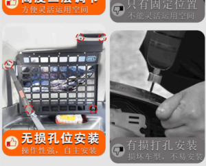 10cmもない空間じゃ小物しか入らんし、取り出しもしにくそうだし。ゴムの網棚はもっとダメ、重いものはあまりないもののそんな軽いものばかりではないんでな。
