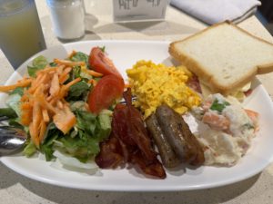今回は葉っぱ野菜があって大変結構。ベーコンとソーセージは至って普通。
