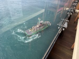 キャビンに戻ってボヤッと到着待ち。昨日からの腰の痛みが全然良くならんので精力的にレク参加とかジムだプールだなどはせんのだ。いやまぁ腰が問題なくてもそういうことはしない質ではあるのだが。