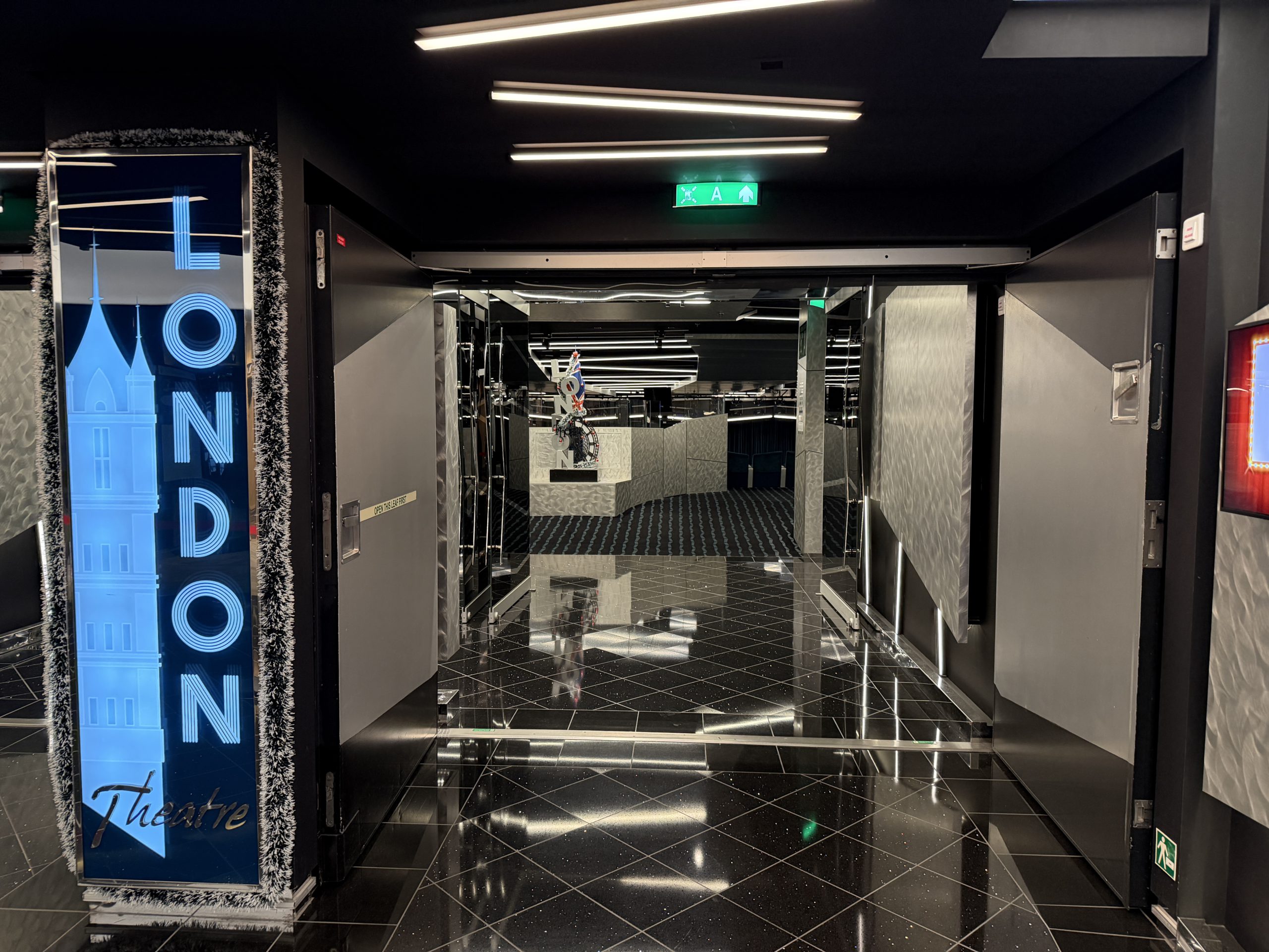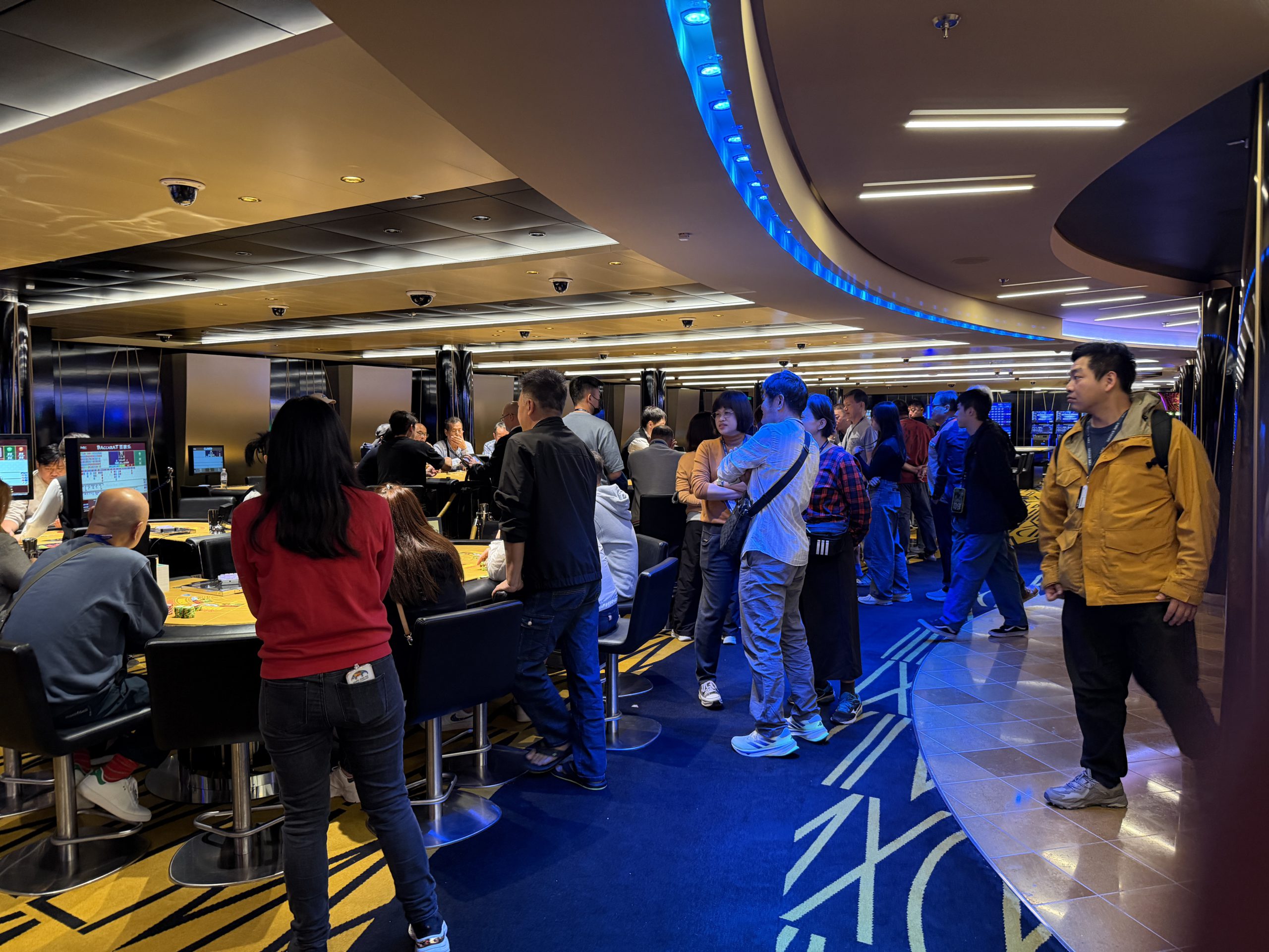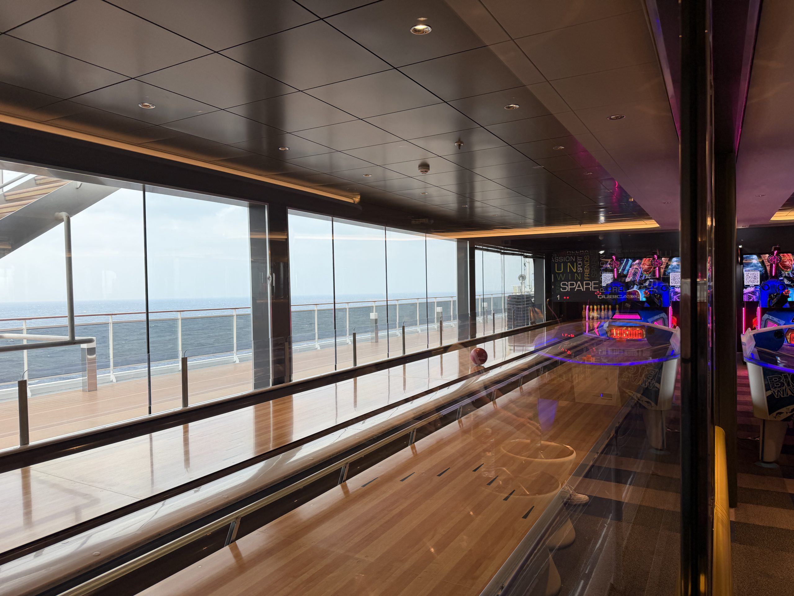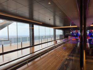デッキ18は艦首側と艦尾側に分かれていて、バーとかラウンジとかがある。酒飲みに行くなら船首側のラウンジが一番広くて良さげ、