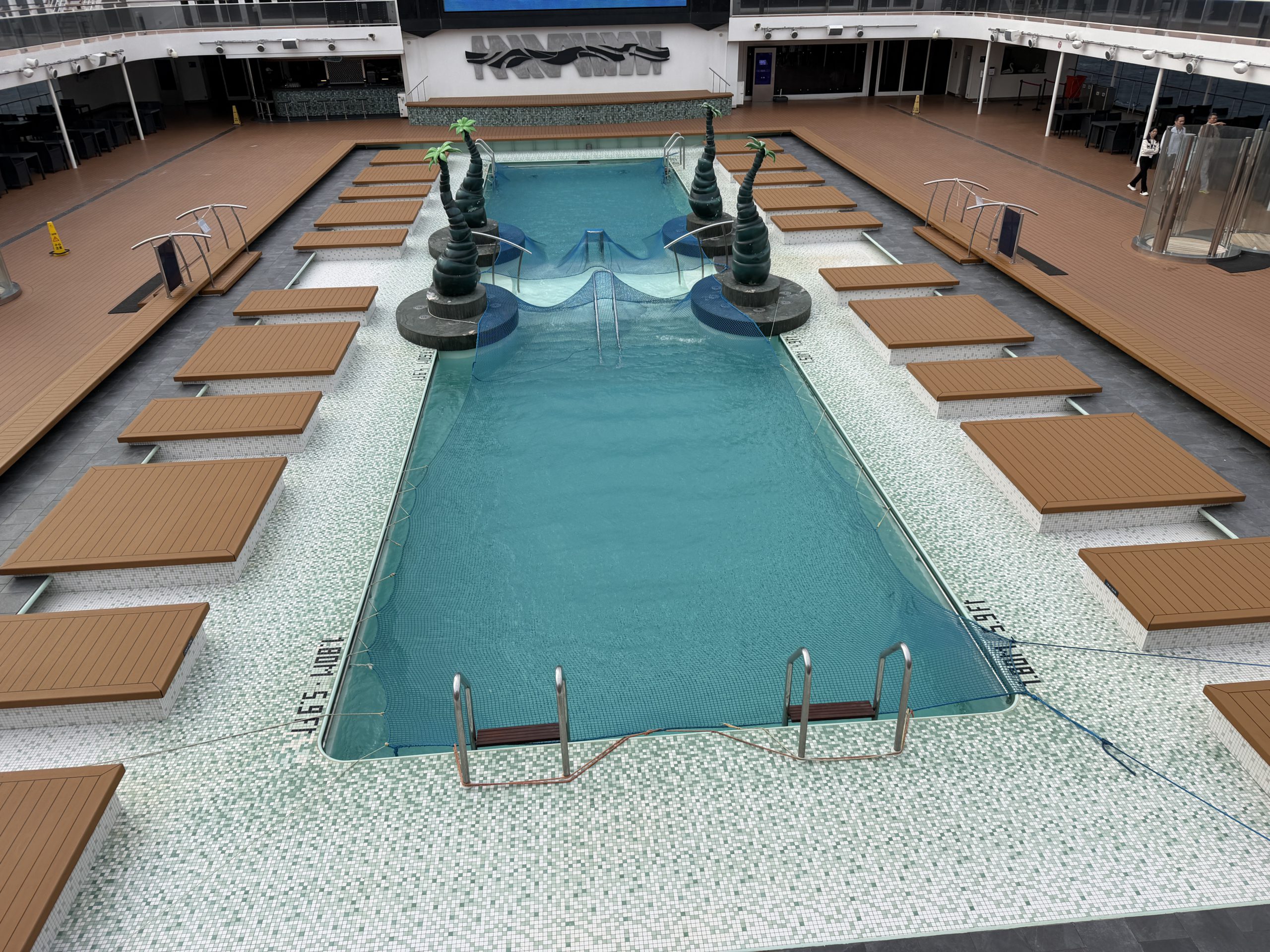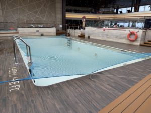 一つ降りてデッキ15、毎日数回行っている食堂のほかプールのあるデッキ。