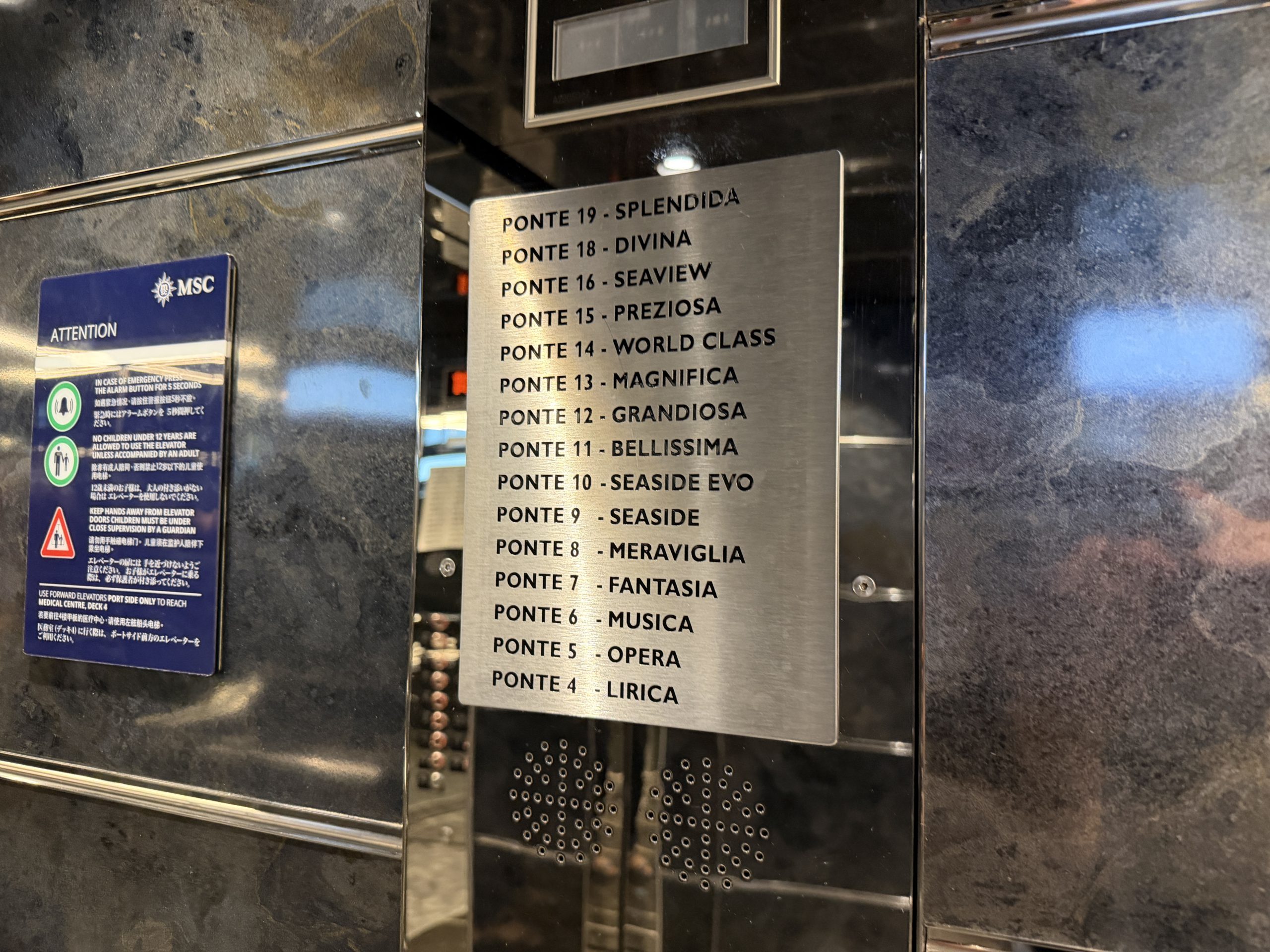 各デッキにはなんか代名がついていてエレベータとかに出ているのだが、使われることはない。多分船員にいっても通じない。