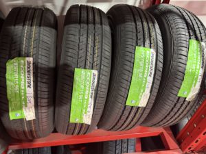 今日交換できるなら買ったかもしれんけど明日以降ならなしだな、ってことでお断り申し上げ、BridgestoneのEcopiaっちゅう安タイヤが特売$3298だったので、これ買ってタイヤだけ替えることにした。