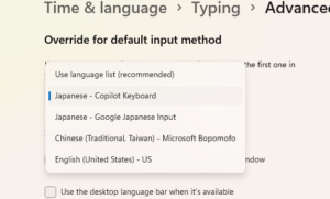 Copilot Keyboardを入れた後でMS-IMEを消そうと思っていたんだが、まずその前に試用のためデフォルト日本語IMEをCopilot Keyboardにしようとしたら、